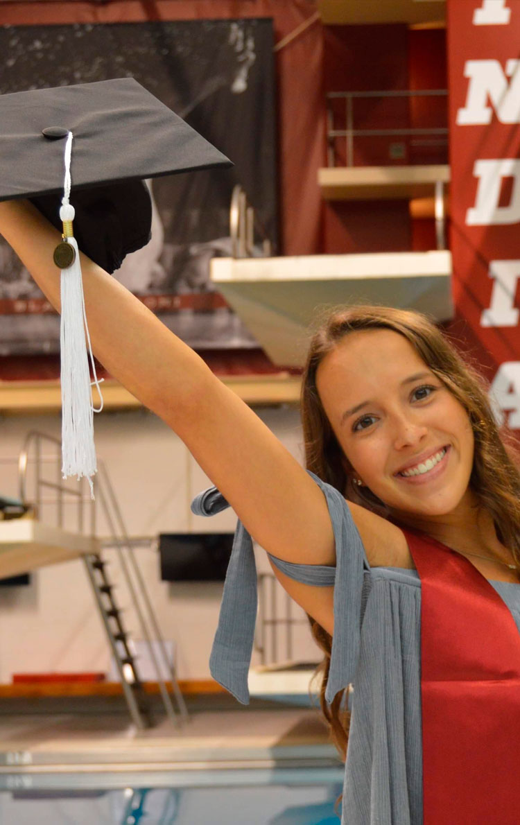Jess decided to continue her academic and athletic career at Indiana University, diving for one of the most successful diving programs in the country. Her coach, Drew Johansen, the head diving coach for the 2012 Olympic Diving Team, helped set Jess on a path to success. During her time competing for IU she became one of the most accomplished female divers the school had ever seen.